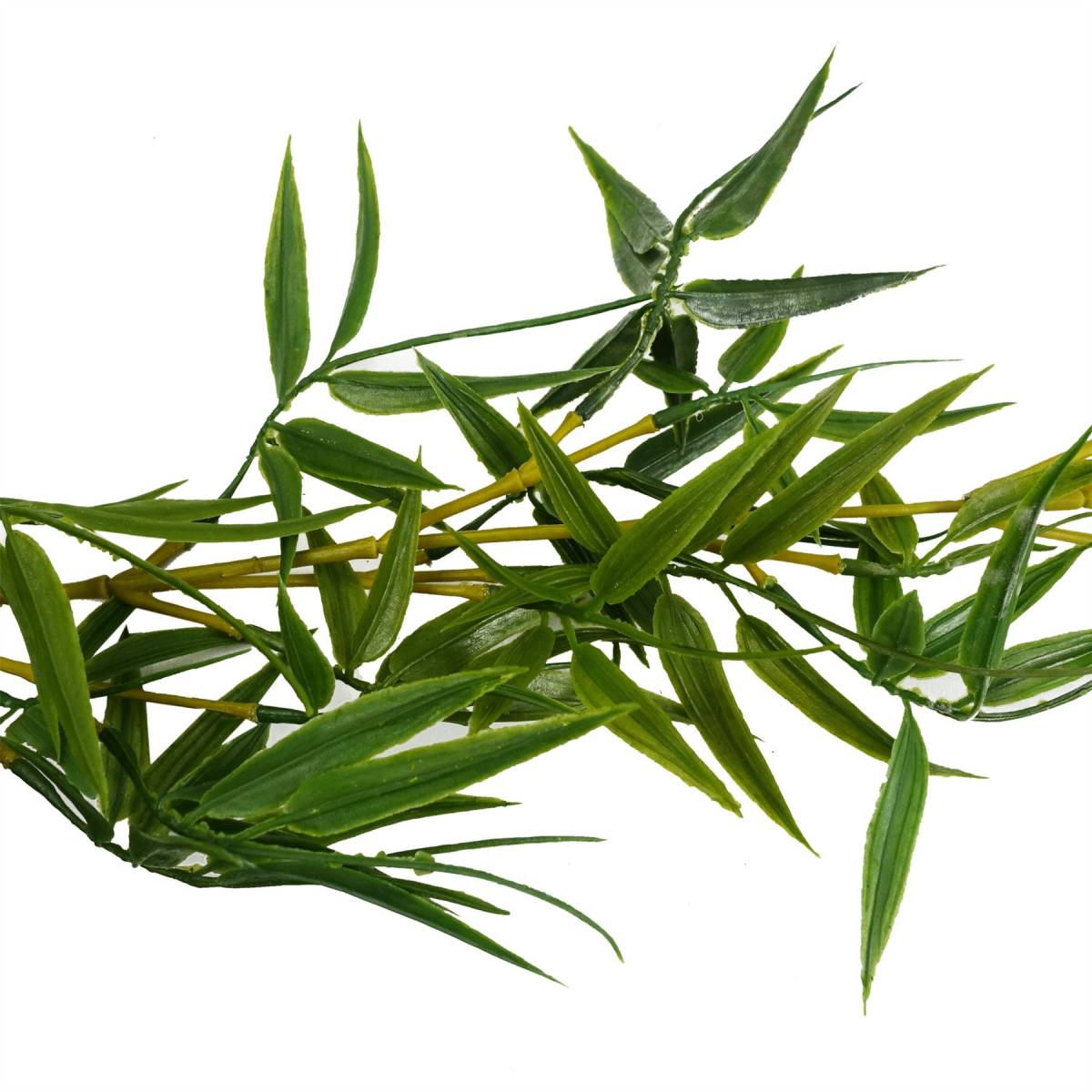 Our artificial Bamboo hanging garland is designed to bring a touch of nature into your decor without the maintenance of real plants. This garland features incredibly realistic plastic leaves and stems, expertly crafted to mimic the lush appearance of genuine bamboo foliage. The wired stems allow for easy shaping and positioning, enabling you to customise the garland to fit your specific space and aesthetic needs. Perfect for draping over doorways, hanging from ceilings, or combining with other garlands to create a fuller, more vibrant display, this versatile piece is ready to showcase right out of the box. 180cm from end to end when flat. Plastic leaves.