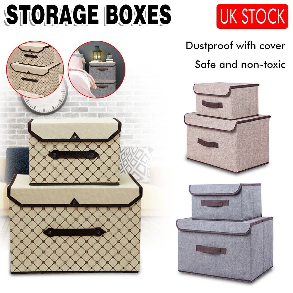 2 IN 1 Foldable Square Fabric Canvas Storage Boxes Portable Drawer With Lid UK