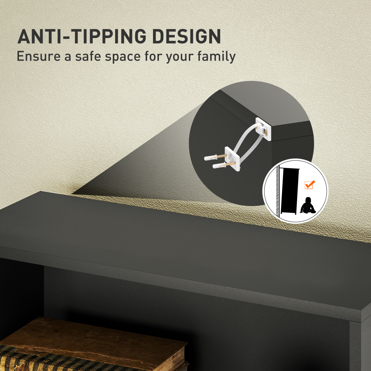 - Equipped with anti-tipping straps to secure the unit to the wall, ensuring safety and stability.
