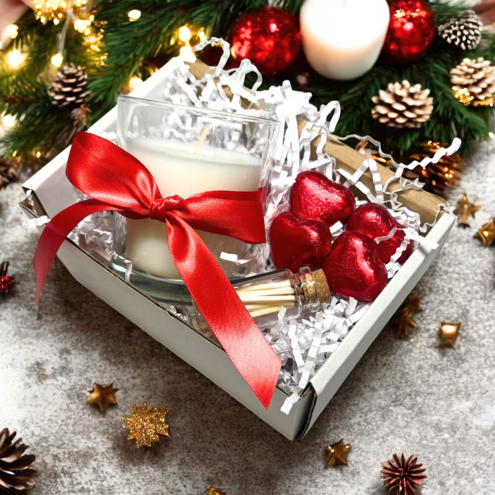 Red Ribbon Candle Gift Set for Christmas, Valentines, Birthday or Anniversary