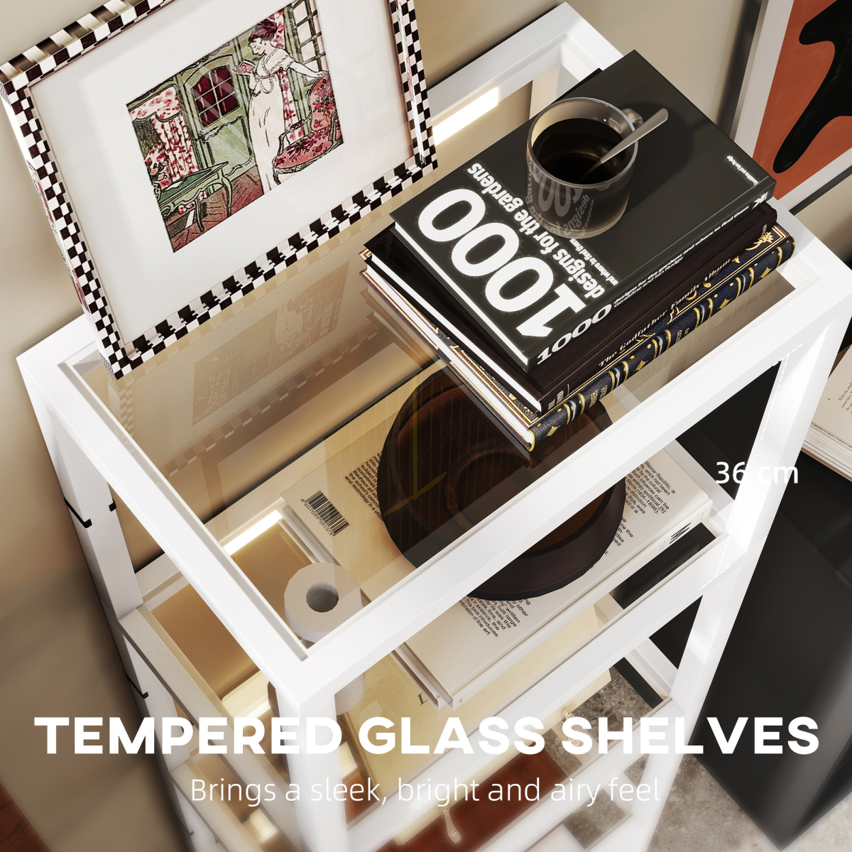 Illuminate your space with our elegant Floor Lamp, featuring a unique four-tier display shelf that combines functionality with style. The leading-edge design includes four warm white LED lights that create a cozy and inviting atmosphere, making it perfect for any room setting. The lamp's foot switch allows you to effortlessly adjust the brightness to suit your mood, while the sleek tempered glass shelves enhance the overall aesthetic and light transmission.